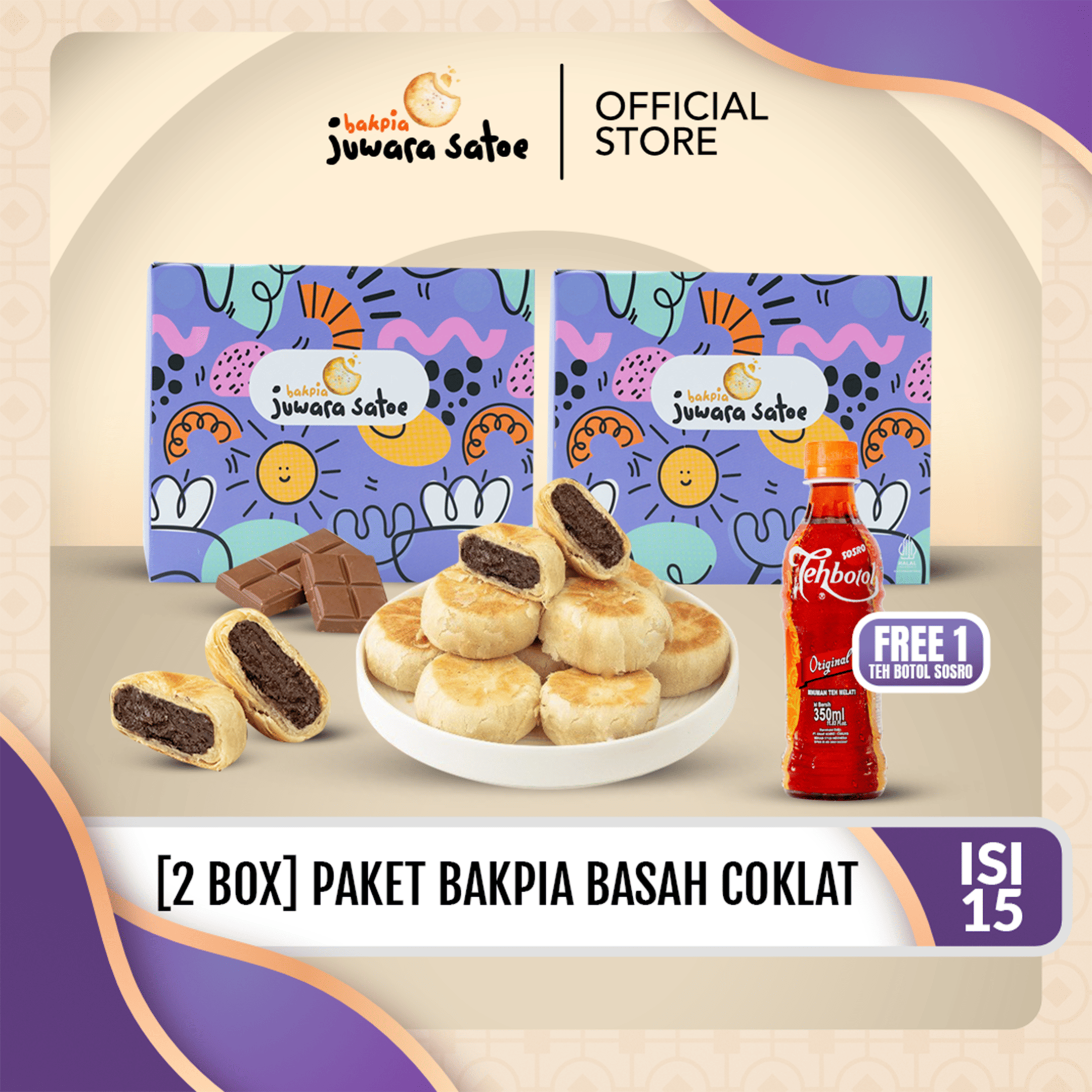 [ 2 BOX ] Paket Bakpia Basah Coklat Isi 15 [FREE Teh Botol] - JUWARA SATOE