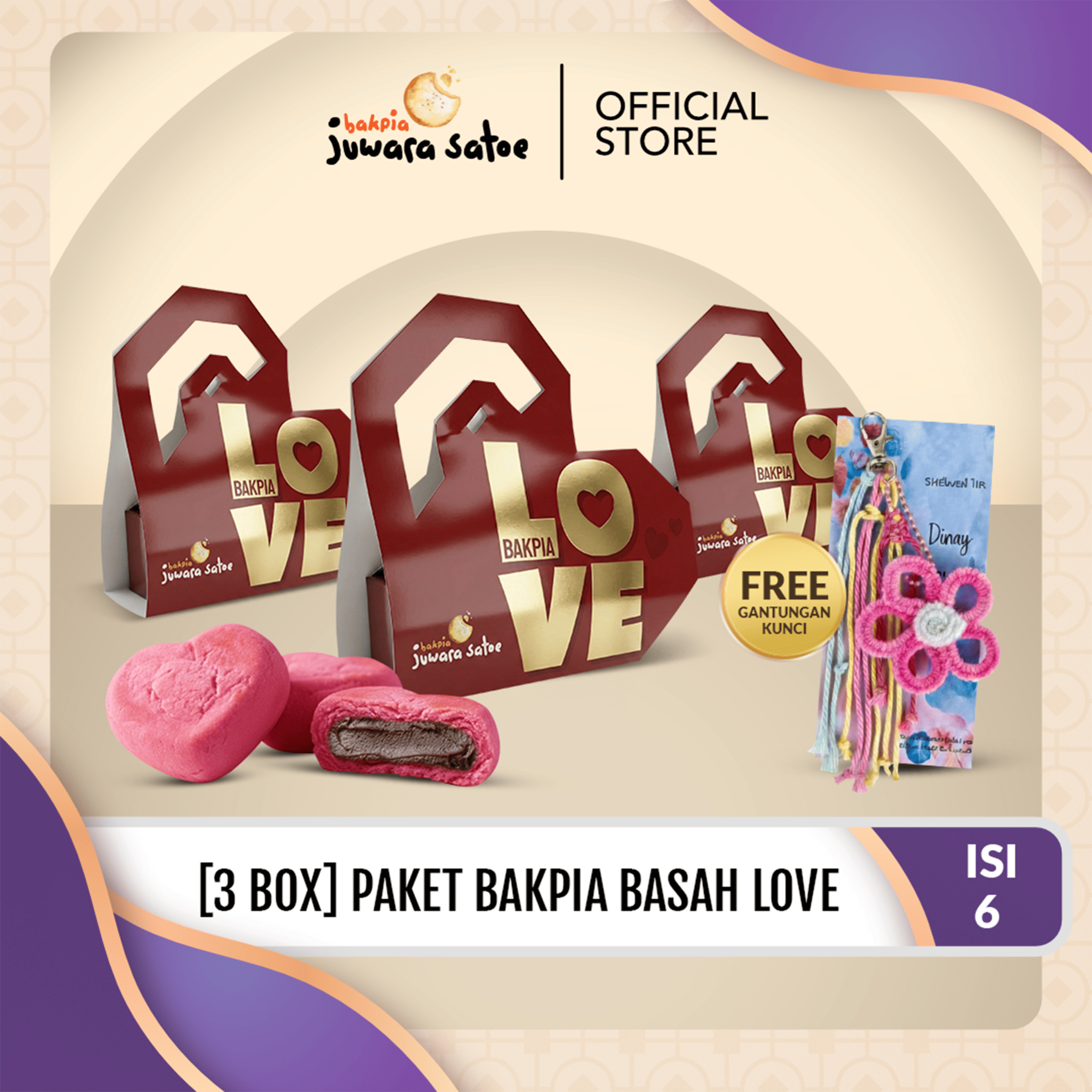 [ 3 BOX ] Paket Bakpia Basah Love 6s [FREE Gantungan Kunci] - JUWARA SATOE