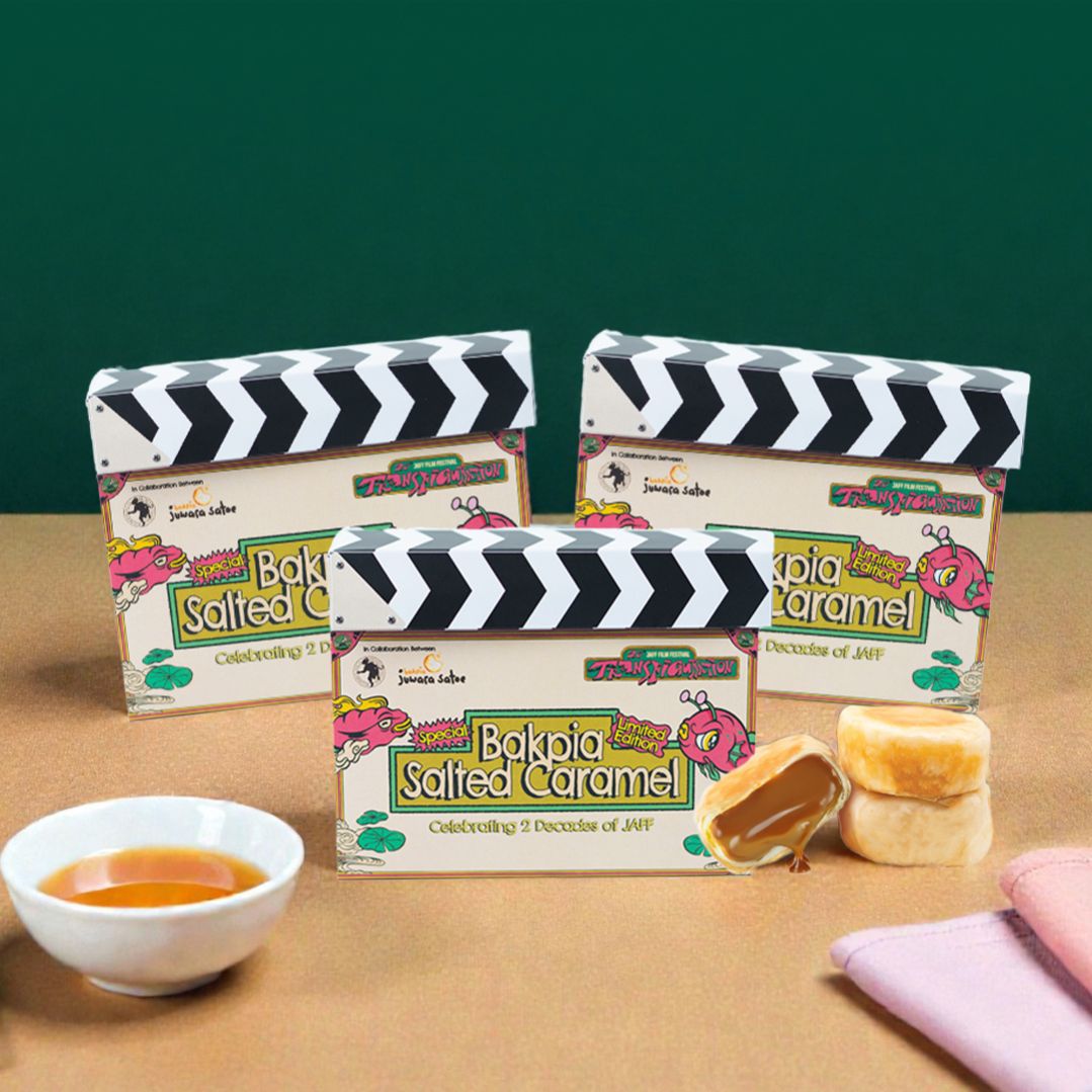 Varian bakpia edisi kolaborasi eksklusif Juwara Satoe x JAFF. Menghadirkan rasa karamel lembut berpadu sentuhan garam laut yang memberikan keseimbangan cita rasa creamy.
