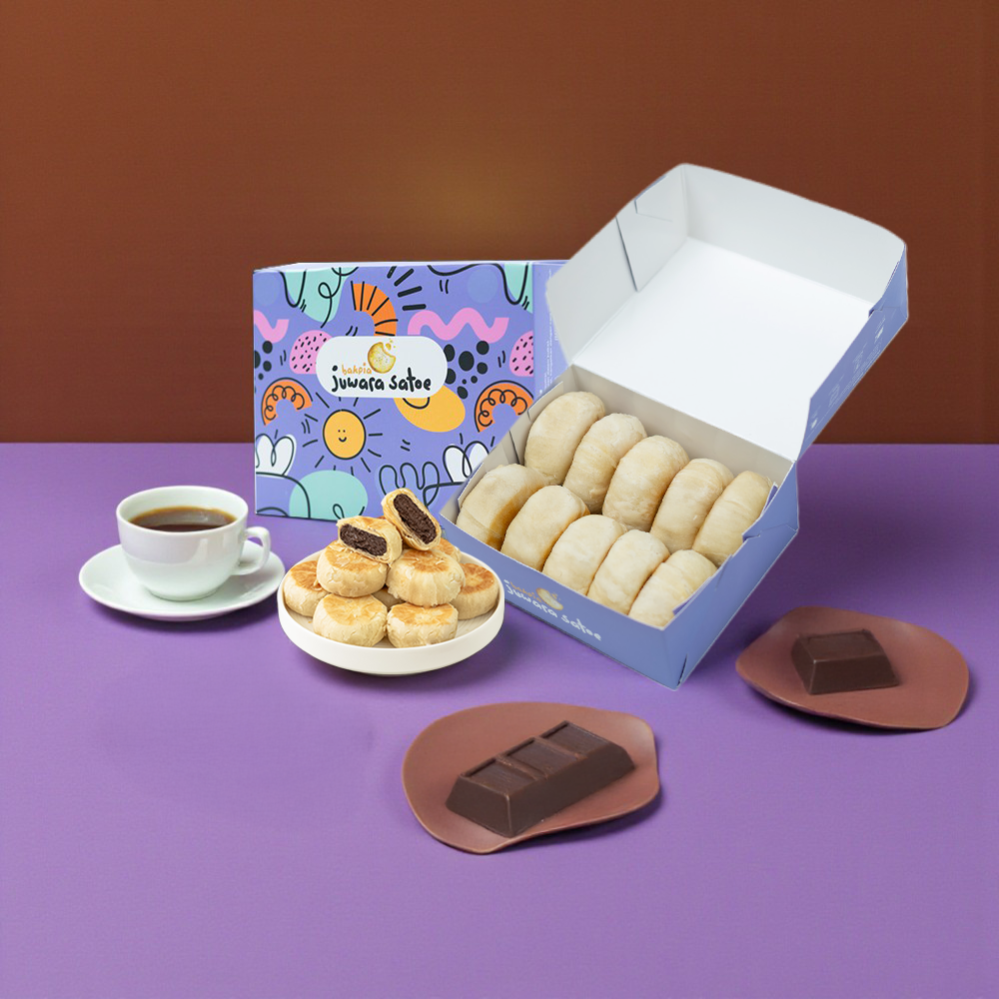 Perpaduan yang pas dengan bahan bahan terbaik yang kami pilih ,tepung terigu, coklat, keju, kumbu hitam, gula, margarin, minyak masak dan garam sehingga menyajikan bakia yang pas dengan kulit tidak terlalu tebal dan tipis.